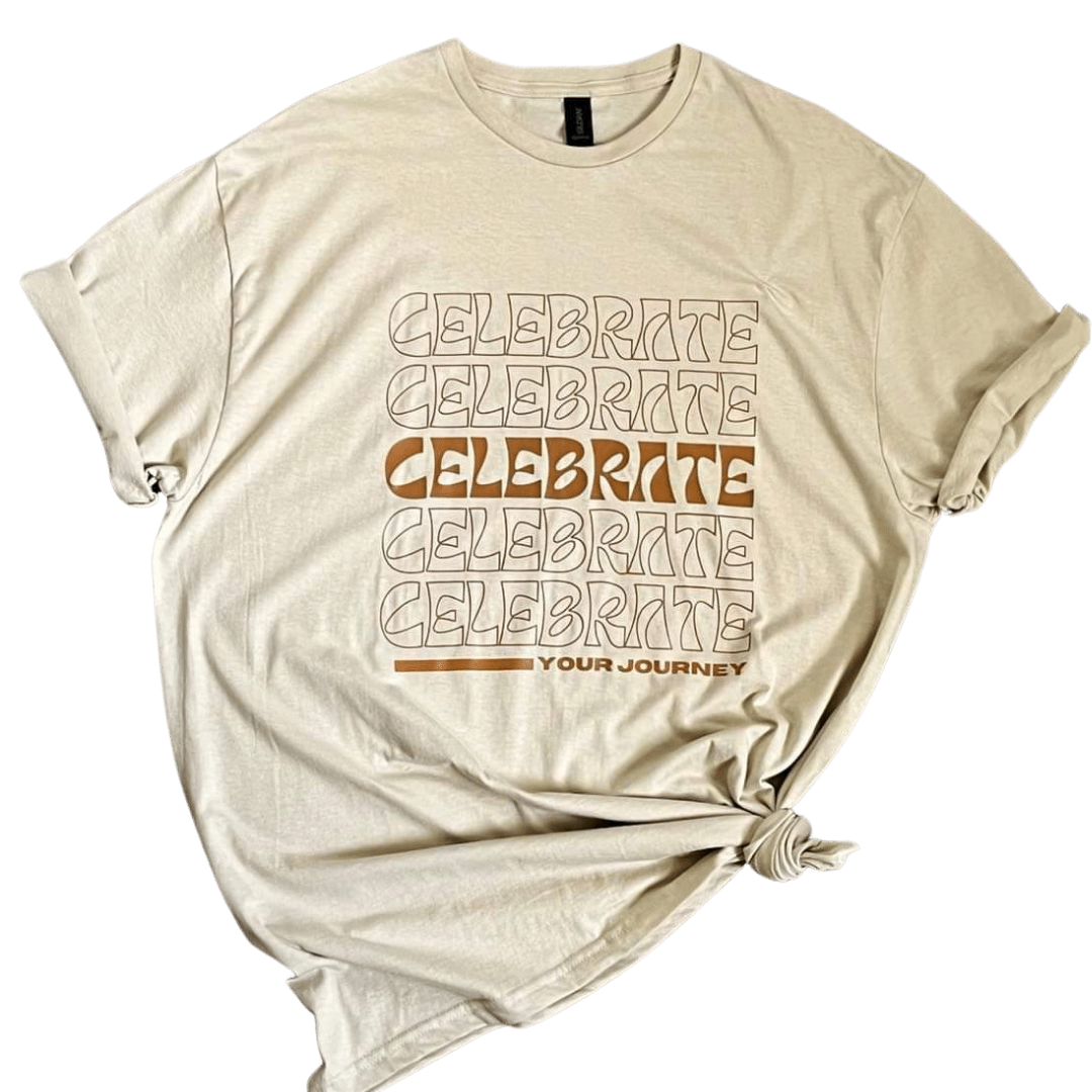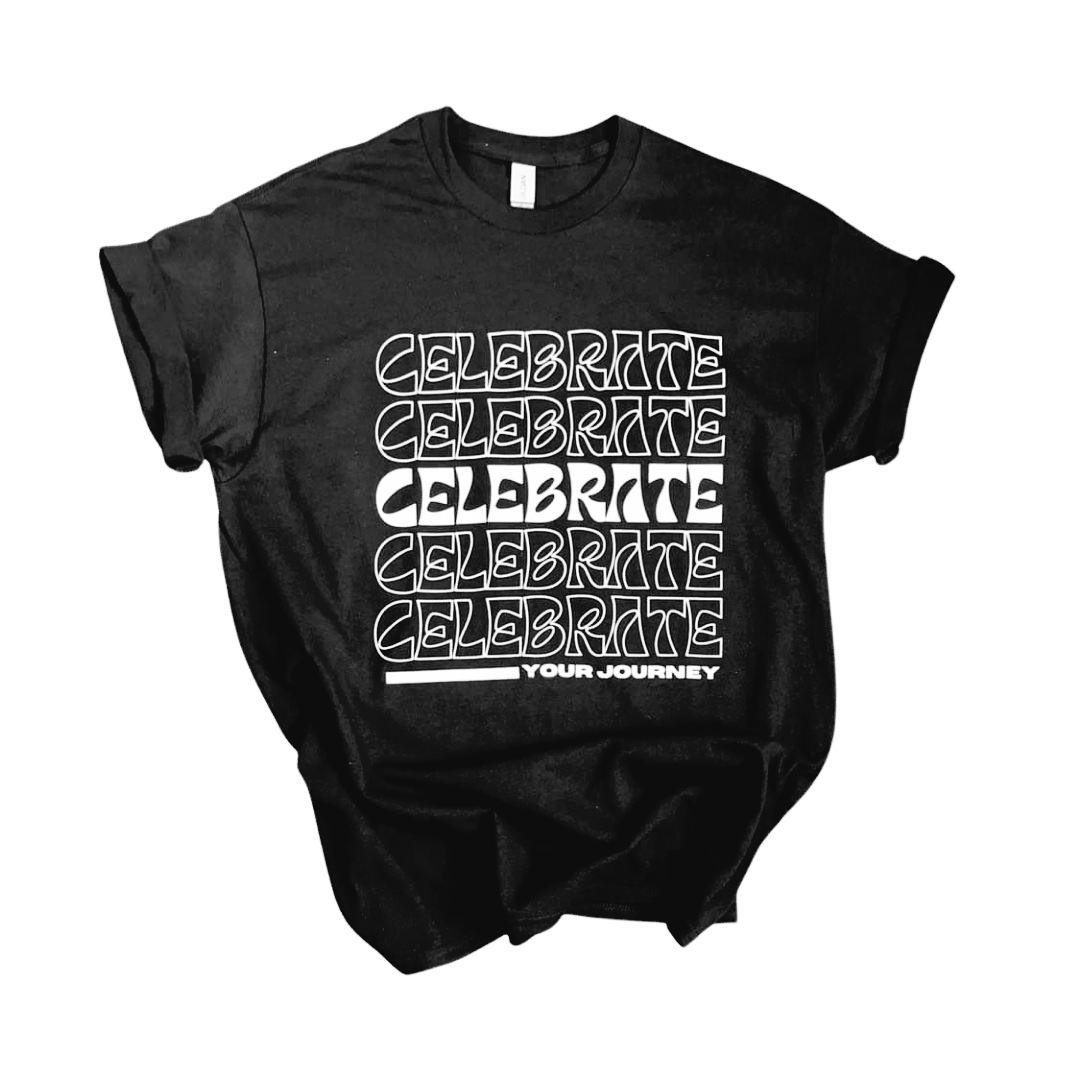 "Celebrate Your Journey" in style with our slogan Tshirt. Our super soft lightweight tee not only helps you celebrate your journey in style but with comfort and easeas well.