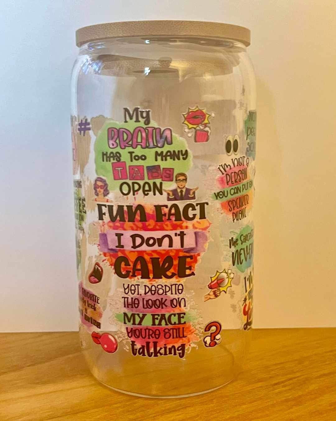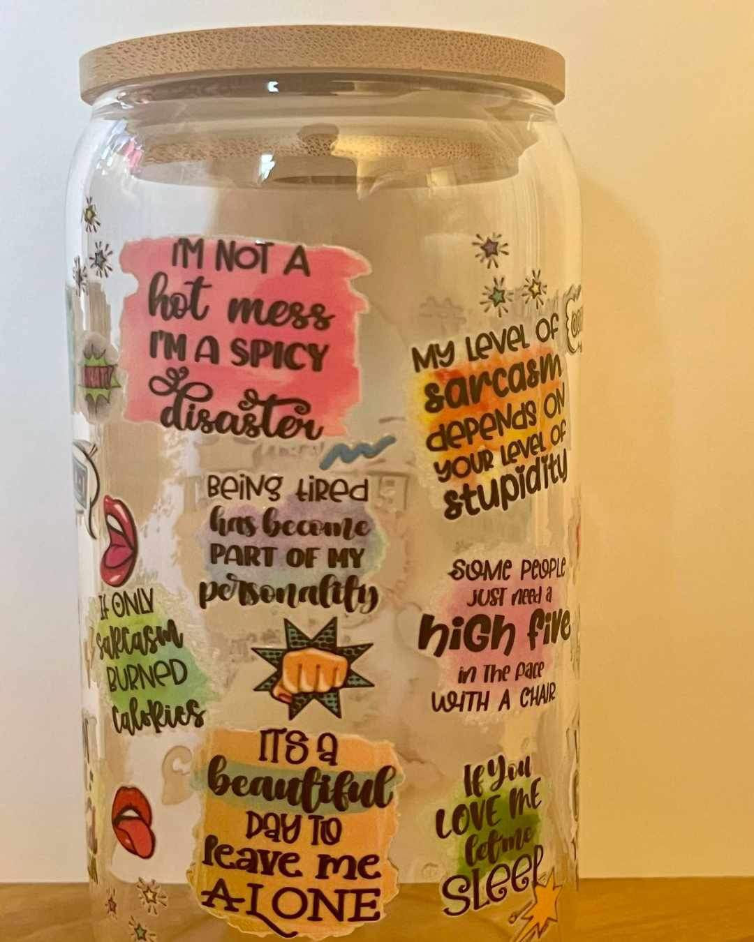 Elevate your daily rituals with our exquisite 16 oz Glass Can Cup, designed to inspire and empower you on your journey to better health and wellness. Crafted from high-quality, durable borosilicate glass, this cup is adorned with a delightful array of motivational, inspirational, and subtly sarcastic quotes that resonate with the modern woman. Each sip becomes a moment of reflection, celebration, and joy, adding a touch of mindfulness to your everyday routine.