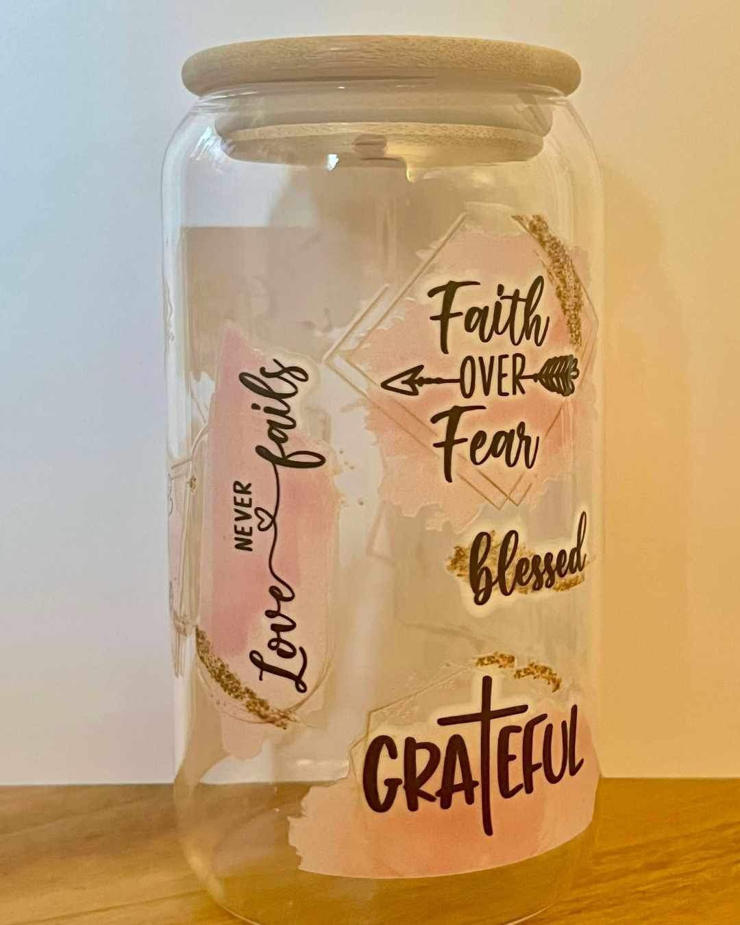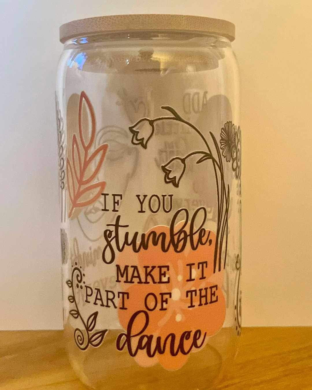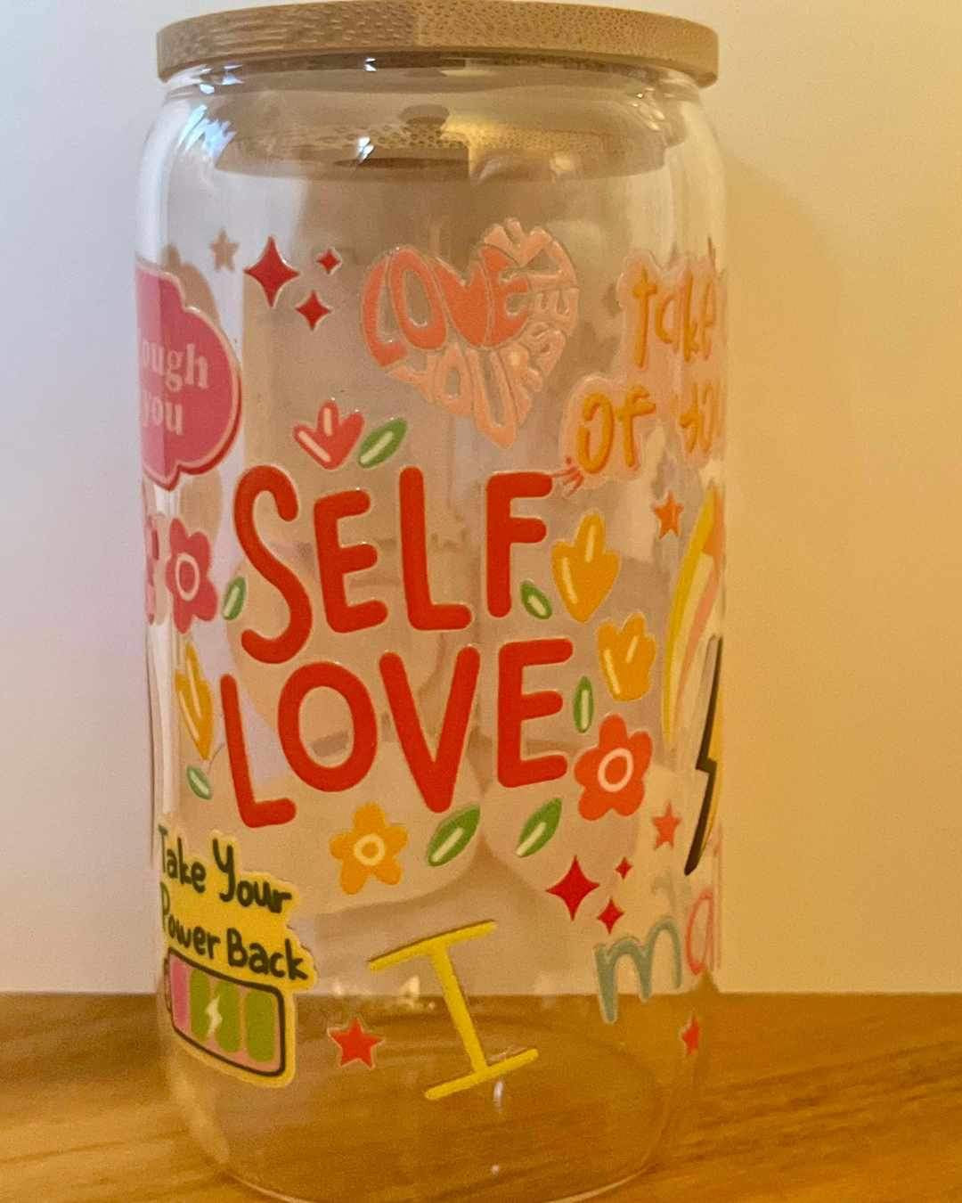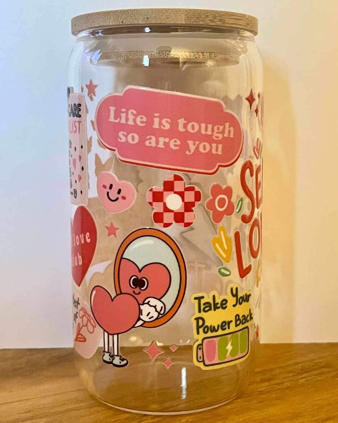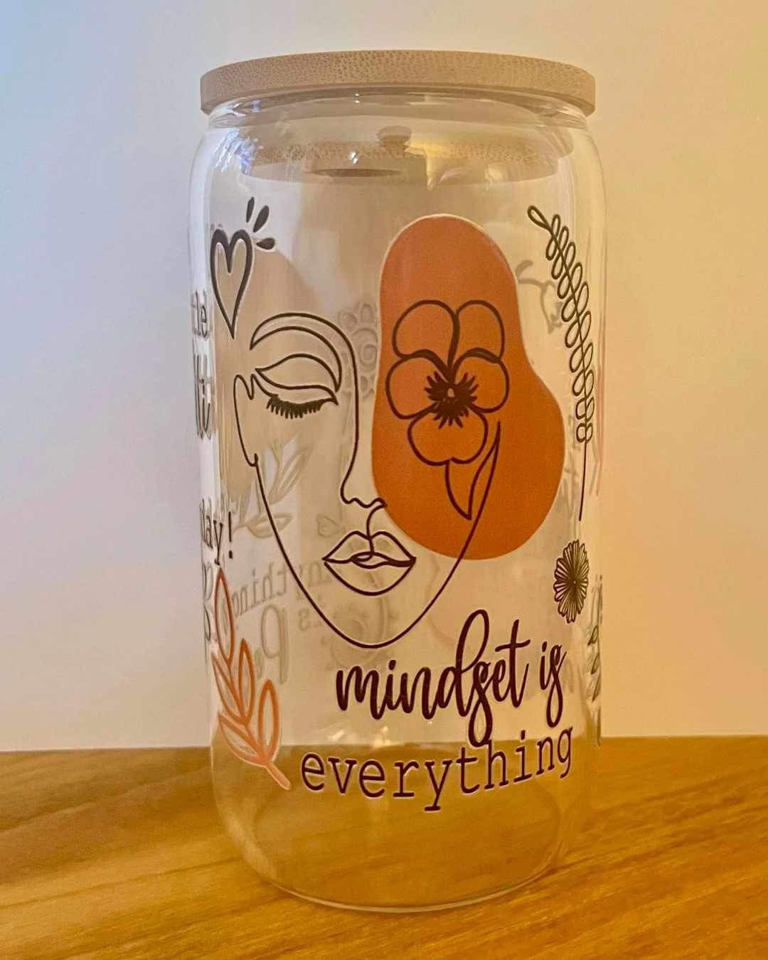 Designed with your wellness in mind, this cup is more than just a drinking vessel; it's a companion on your path to creating daily habits of peace and stillness. Whether you're sipping your morning smoothie, afternoon iced tea, or evening detox water, let our Glass Can Cup be a reminder to cherish each moment and embrace the journey. Celebrate your growth, laugh at the little things, and find inspiration in every sip with this beautifully crafted, motivational cup.