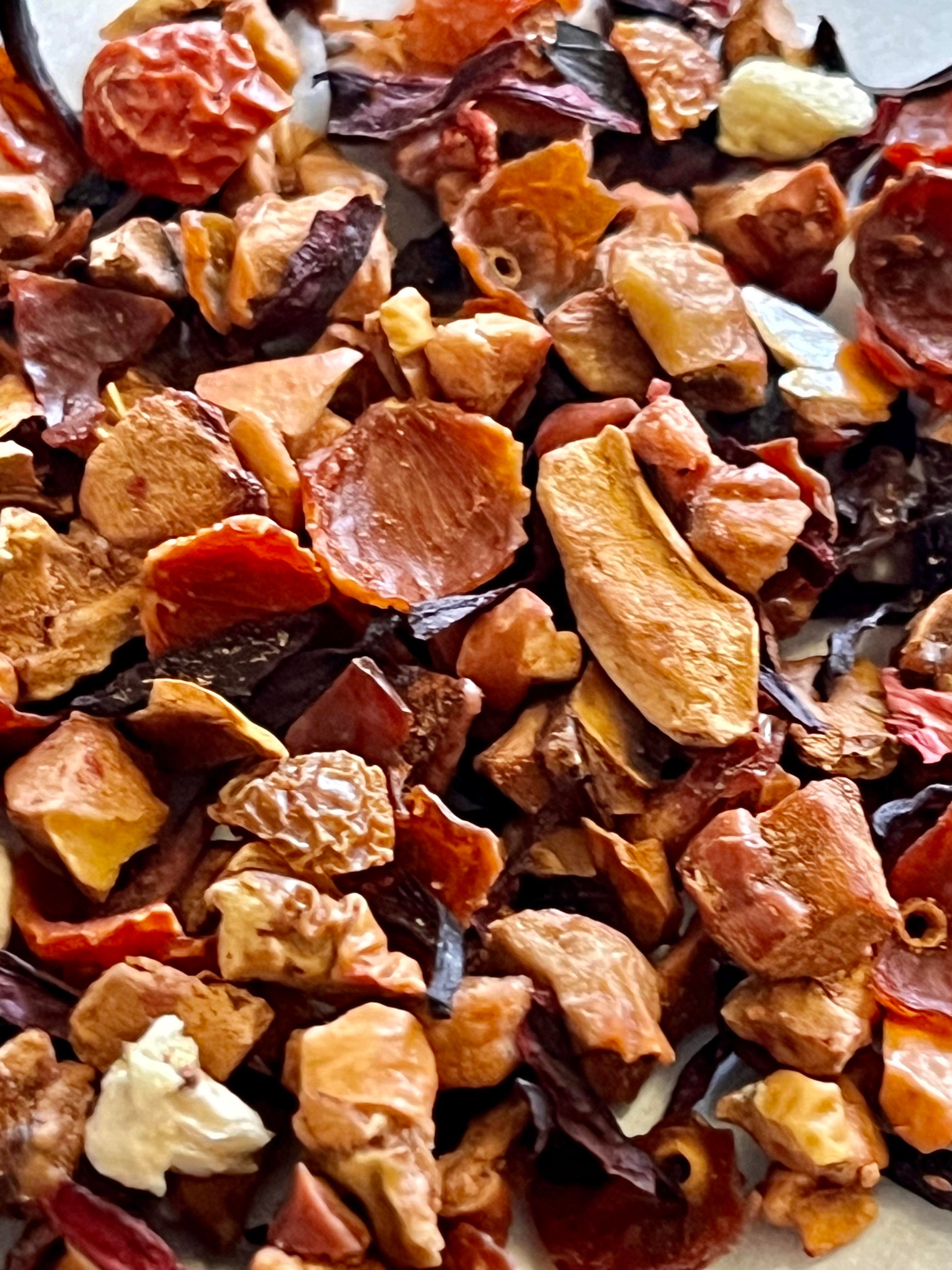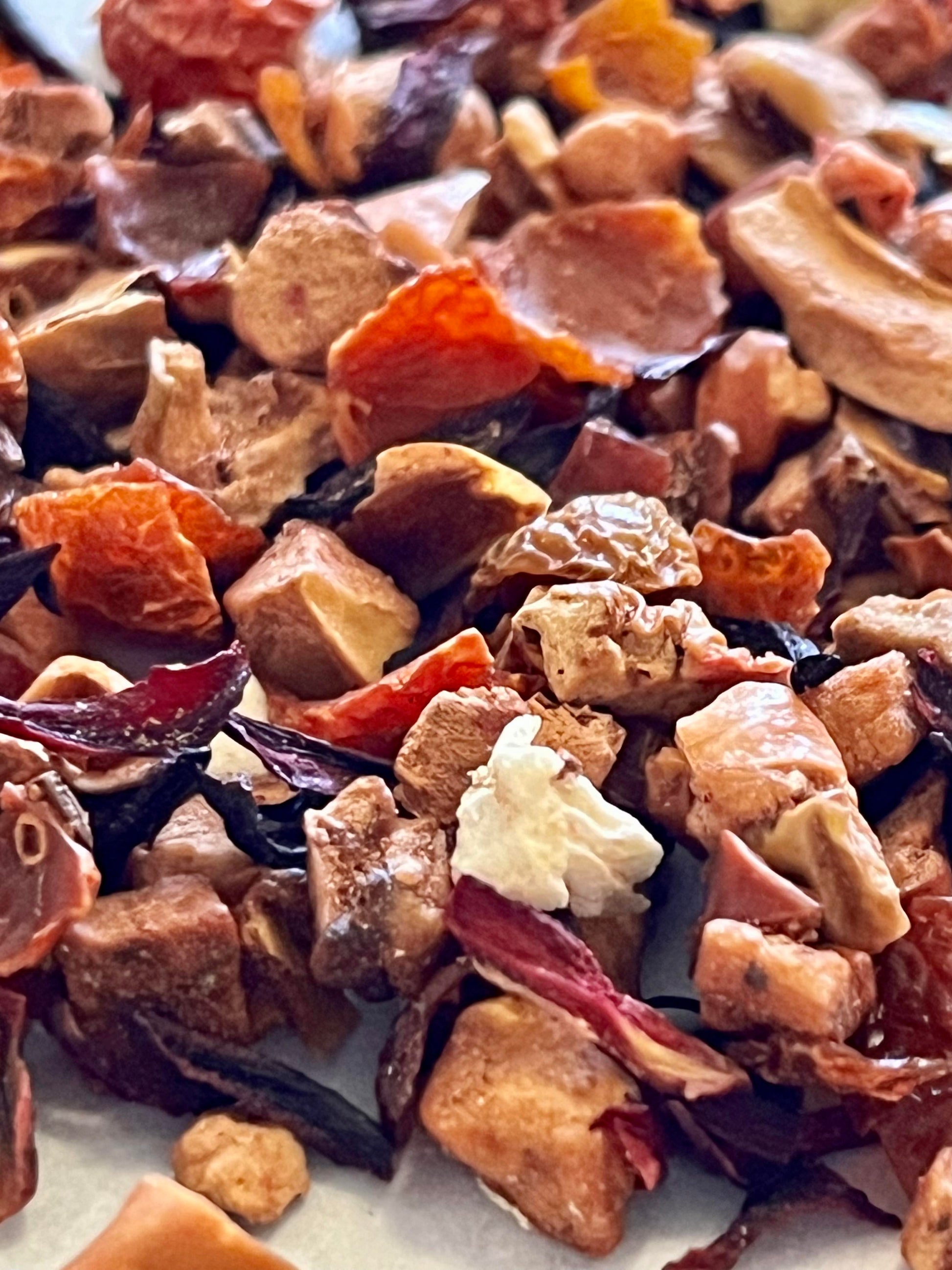 Ingredients: Apple pieces, Hibiscus petals, Rosehip pieces, Kiwi pieces, Strawberry pieces, Natural flavors (organic compliant).